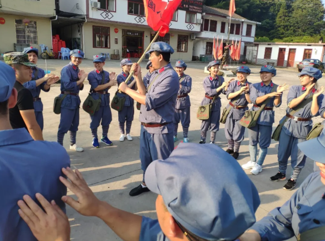 穿上红军装、戴上红军帽,扎紧标注着“八一”的腰带。我们整装待发。走一遍红军路,牢记革命的艰辛,传承红色基因。