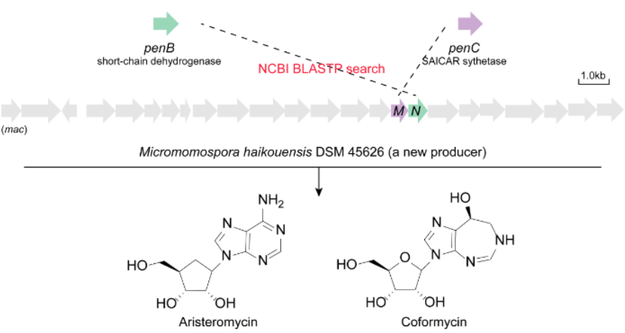图2 嘌呤核苷类抗生素的靶向基因组挖掘