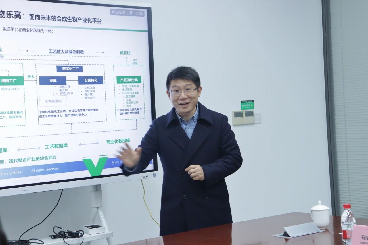 在我司陶福平总经理、公司副总于教授、副总秦博士的陪同下,参观太阳成集团官网展厅及价值创新平台骐骥平台和研发平台鸿鹄实验室。陶福平总经理详细介绍了公司的产业概况、技术优势、经营情况以及未来战略规划等。作为国内合成生物产业最早的一批企业,杭州太阳成集团官网始终坚持可持续发展,以绿色生物智造为导向,致力于成为绿色生物智造全球领导者。