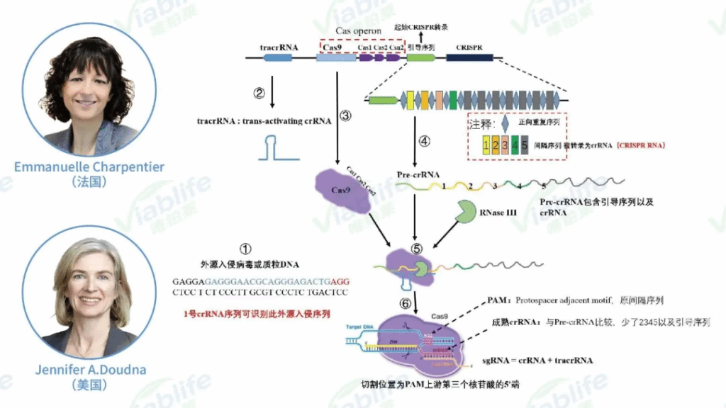 020年诺贝尔化学奖获得者美国科学家 Jennifer Doudna和法国科学家Emmanuelle Charpentier,及她们发明的基因修饰方法CRISPR-Cas9。该技术可用于任意基因的编辑改造,如基因敲除、敲入、定点突变等
