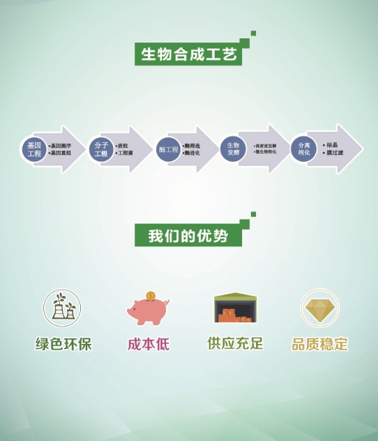 太阳成集团官网采用国际领先合成生物学技术,所得产品绿色环保、品质稳定、供应充足、成本低。目前大部分产品已经投入量产,可满足公斤~吨级的需求。