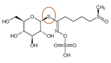 硫苷是非糖物质通过巯基所形成的一种糖苷,如在萝卜、西蓝花中广泛存在的萝卜硫苷就是硫苷的一种。
