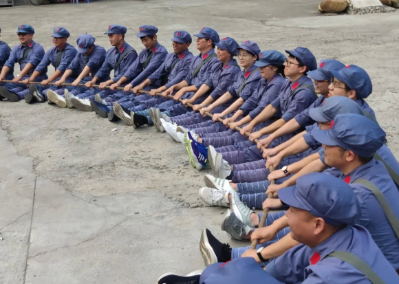 在两位教官的指导下,完成军姿、军礼等学习,并将团队编成两个团,授予军旗,团结协作完成拓展任务!