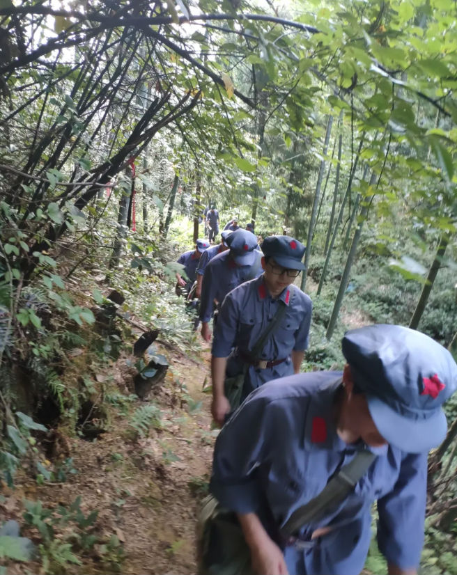 穿上红军装、戴上红军帽,扎紧标注着“八一”的腰带。我们整装待发。走一遍红军路,牢记革命的艰辛,传承红色基因。