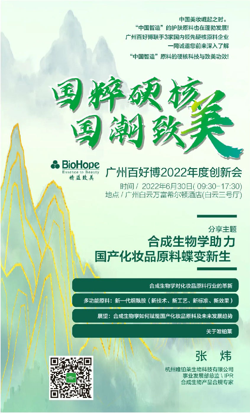 届时,杭州太阳成集团官网将以“合成生物学助力国产化妆品原料蝶变新生”为分享主题,多维度解密生物合成技术产业化成果——新一代烟酰胺。