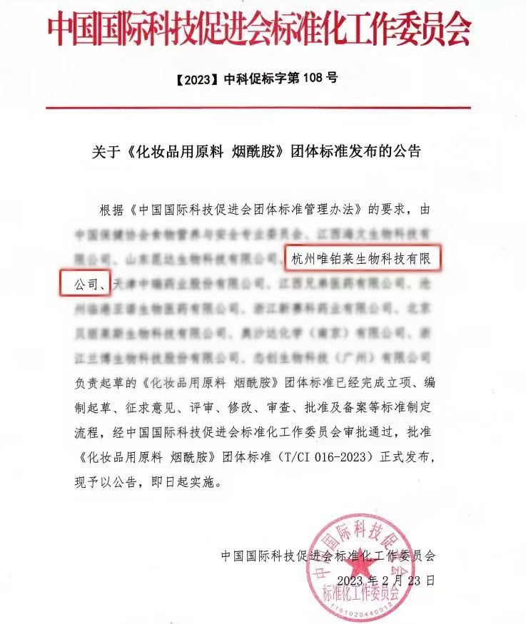 日前,中国国际科技促进会标准化工作委员会发布了化妆品用原料烟酰胺团体标准,太阳成集团官网作为起草单位参与编制。该团体标准发布是太阳成集团官网在深入推动创新驱动发展和标准化战略的一项重要成果。