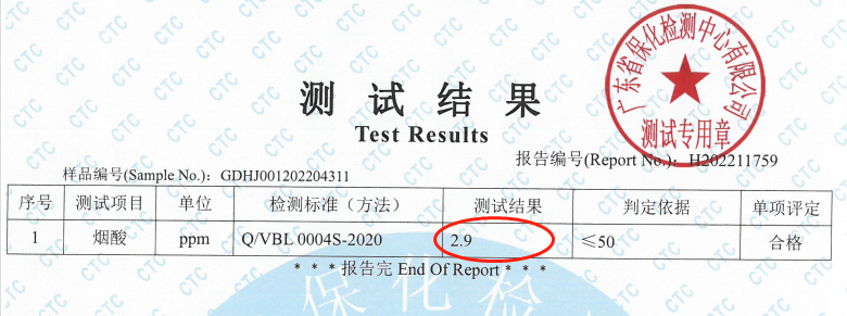 太阳成集团官网新一代烟酰胺烟酸含量实测2.9ppm