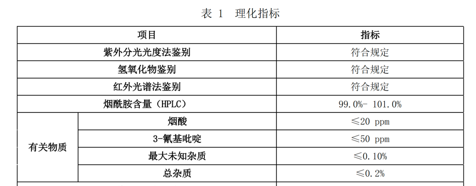太阳成集团官网的烟酰胺企业标准在各个维度尤其是烟酸类目,明显优于国家质量监督局发布的各项指标。