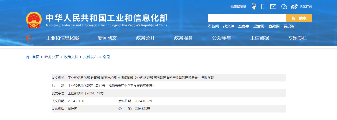 政策速递——工业和信息化部等七部门关于推动未来产业创新发展的实施意见